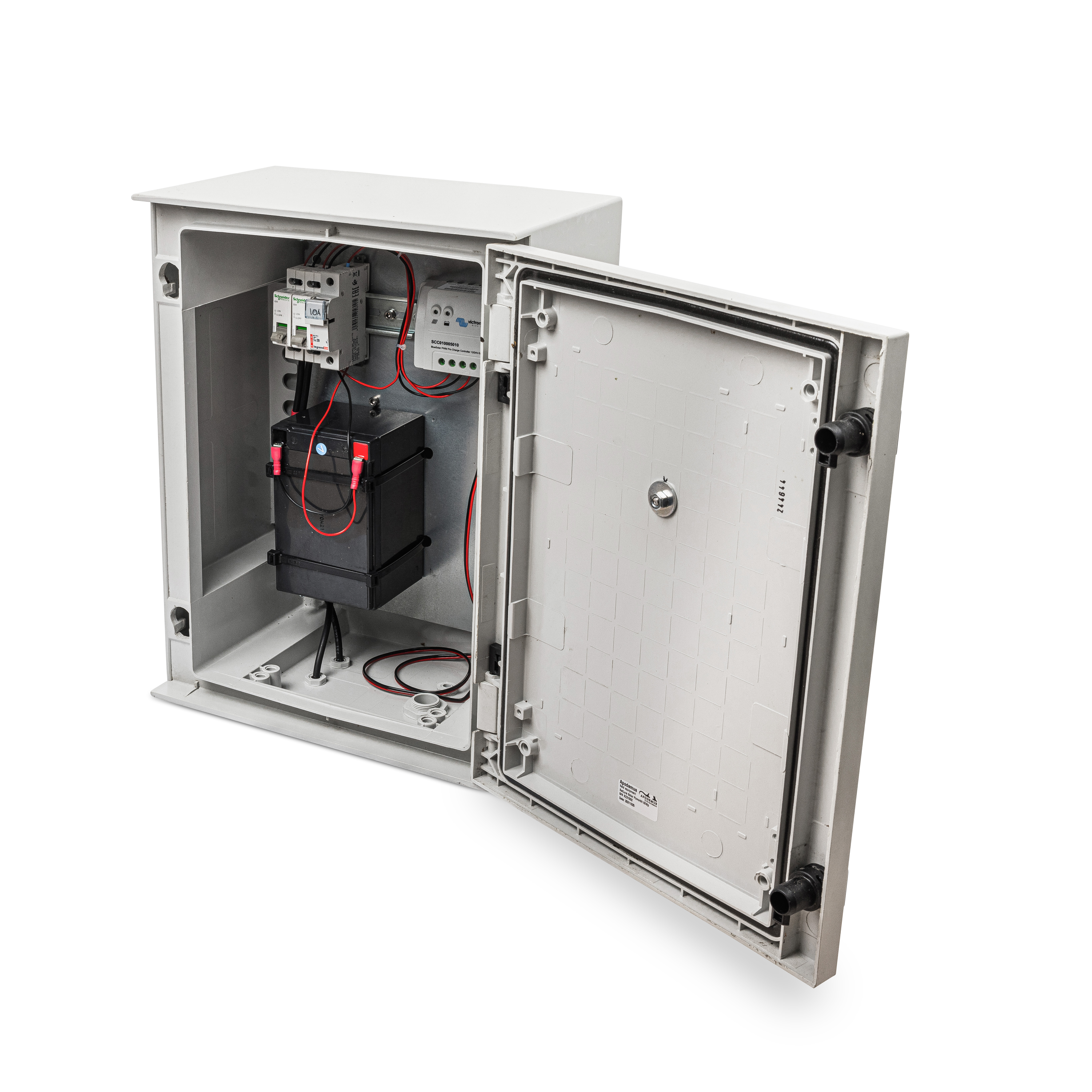 | Afmetingen en gewicht installatiekast: | 43x33x20 cm, 11,5 kg (15,5 kg bij 24Ah) |